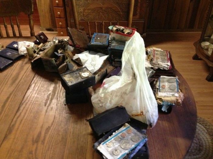 La mitad fue dañada o destruida, y algunas cubiertas estaban podridas, pero el precioso contenido se había salvado. ¡La pareja no podía creer su suerte!