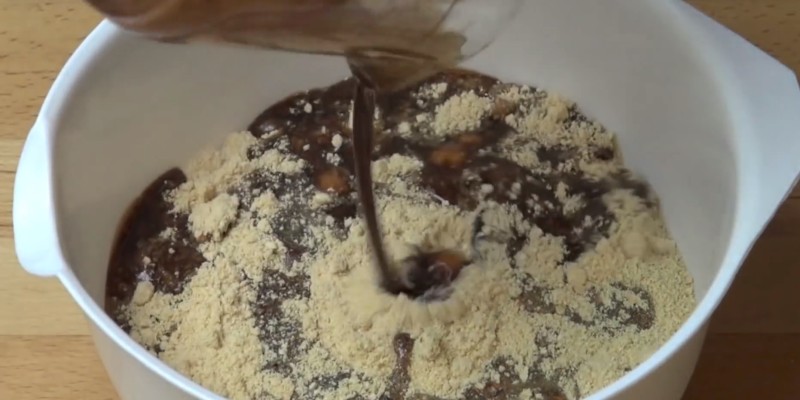 2. Moja las galletas con un poco agua y luego desmenúzalas bien. Échales encima la mezcla de «Nutella» con mantequilla, póngalo todo en el refrigerador.