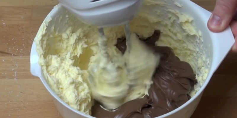 3. Mezcla el resto de «Nutella» con el queso «Filadelfia» con la ayuda de una batidora. Pon también la mezcla resultante en el refrigerador.