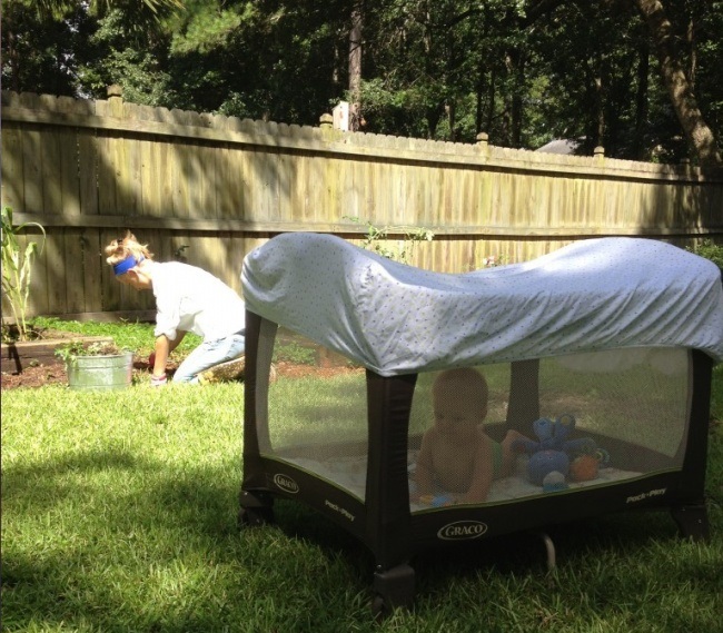 14. Cubre el área de recreo infantil para evitar que al niño le piquen los mosquitos, y para que no se queme con el sol.