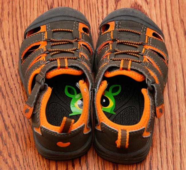2. Si tu hijo confunde el zapato izquierdo con el derecho, corta un adhesivo y pégalo en el interior del zapato.