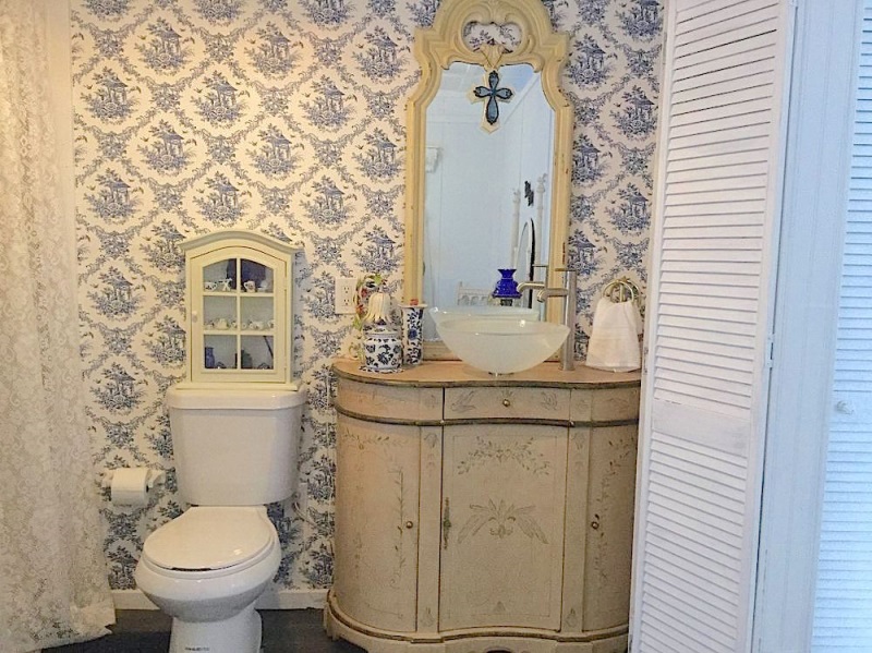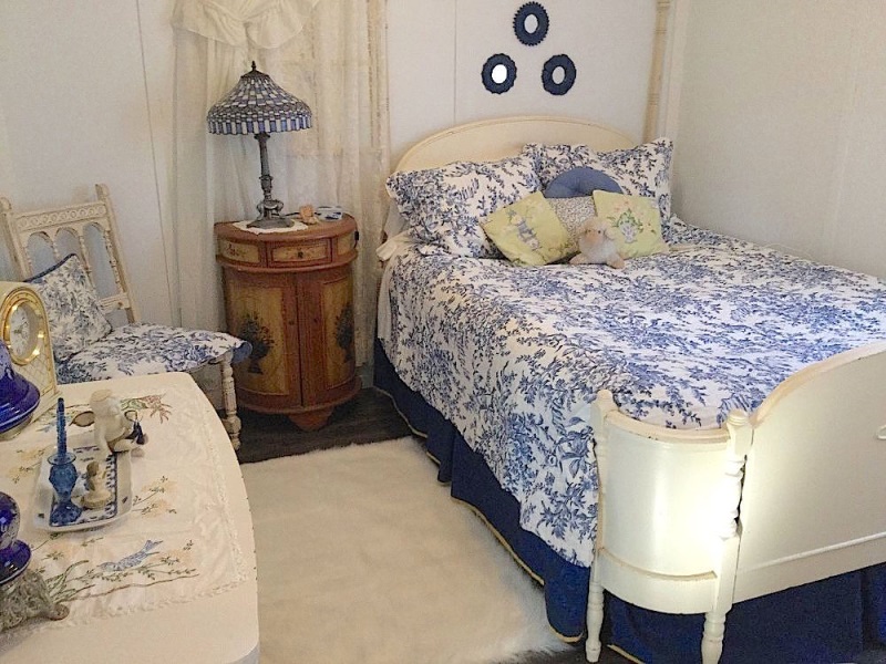 Toda la casa está decorada en el mismo estilo retro. Una vez dentro, se puede apreciar la hermosa combinación de los tonos azul y blanco. ¡Inmediatamente te das cuenta que se trata de una casa creada con amor!