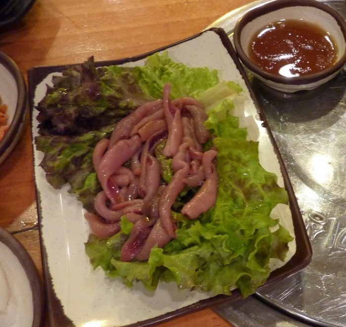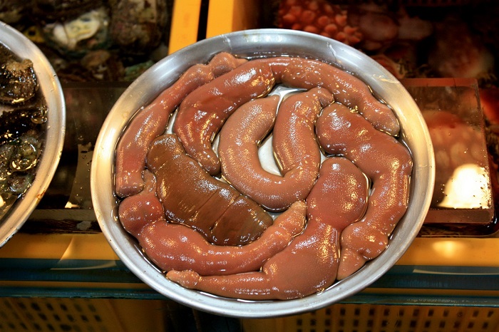 El culpable del suceso es el gusano de mar Urechis, también conocido como «pez pene». Este animal se come con goce en China, Japón y Corea del Norte. Algunos prefieren comerlo crudo, pero se puede hervir y freír. Lo principal es la limpieza de las vísceras y los pelos duros. Para obtener más sabor, suele agregársele aceite de sésamo, sal y salsa.