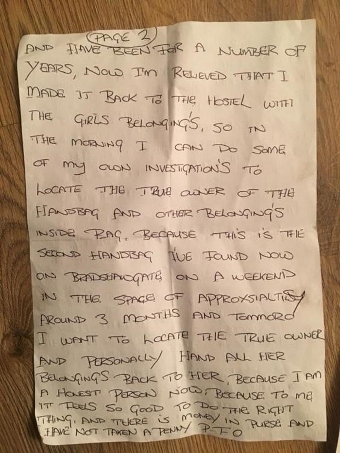 Daisy creía que nunca encontraría su bolso perdido, porque pasó mucho tiempo hasta que se dio cuenta de que le faltaba. De hecho, nunca imaginó que su bolso estaba intacto y a salvo con un tal Paul Calderbank, un hombre sin hogar que había estado tratando de encontrar al dueño de la cartera desde hace dos días.