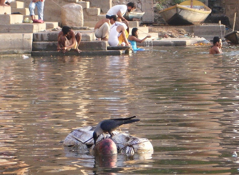 El éxtasis religioso aquí se mezcla con la vida mundana: miles de indios acuden a los baños ceremoniales o abluciones, otros miles, muy cerca, lavan y secan las tortas de estiércol. Aquí se puede encontrar a algún turista, aun borracho del hachís del más alto nivel, o a un yoga aghori desquiciado, absolutamente desnudo, cubierto de cenizas de cuerpos incinerados.