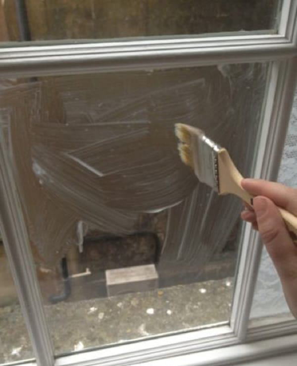 3. Cubre completamente el cristal de la ventana con esta mezcla.