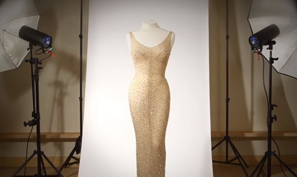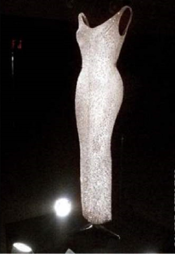 El vestido de Marilyn fue casi tan popular como el propio evento, con un escote profundo translúcido, color carne, tan estrechamente aferrado a su cuerpo, que la diva apenas podía moverse. Quizás lo más interesante: no llevaba ropa interior alguna…