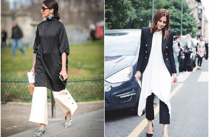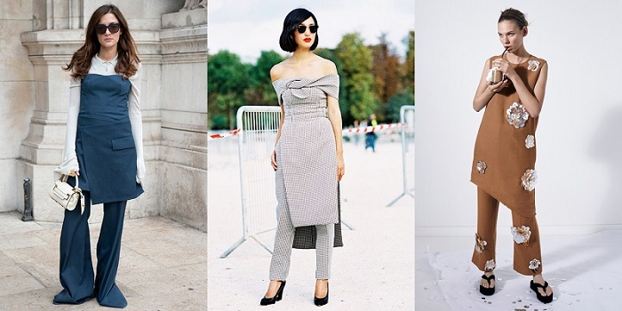 - Una nueva tendencia de este verano son los vestidos sobre los pantalones. Para este conjunto, se pueden seleccionar los colores y la textura exactos, aunque también combinar estilos totalmente diferentes.