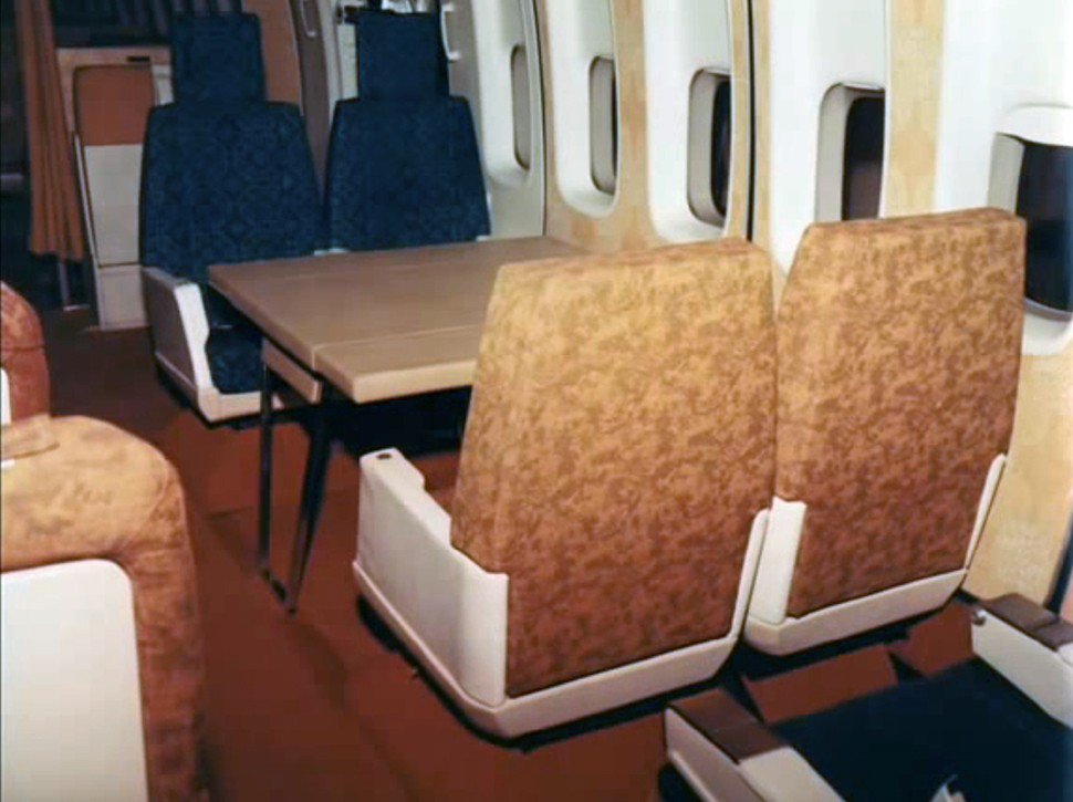Los aviones contaban con mesas en grupos, donde los pasajeros podían interactuar entre sí.